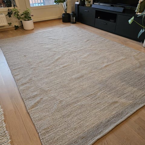Størrelsen (80x150 cm) gjør at det passer perfekt ved siden av sengen, i gangen, eller foran en lenestol. Fargen er en fin grånyanse som er lett å kombinere med andre møbler.
