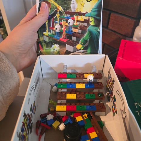 LEGO Minotaurus brettspill. Sett med byggbart labyrintbrett, LEGO-terning og figurer. Spillet går ut på å føre figurene gjennom labyrinten samtidig som man unngår minotauren. Passer som familiespill og kan bygges om for ulike varianter av spillet.