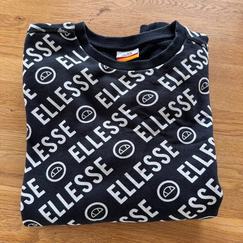Selger en ubrukt Ellesse T-skjorte for herre i størrelse S. T-skjorten er grå og laget av bomull. Klassisk rund hals og kort erm. Stor Ellesse-logo på brystet. Passer til hverdagsbruk og fritid.
