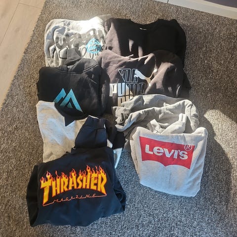 Selger 1 Ola bukse (str 158/164), 1 joggebukse (str 158)og 2 fleece gensere (str 14 år). Kan sendes eller hentes ved kjøp.