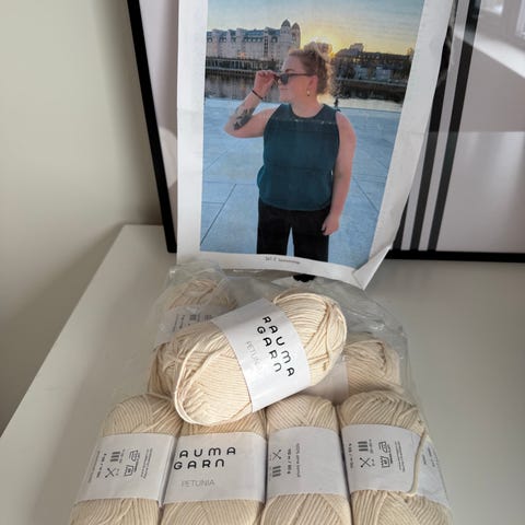 Ny pris for lignende, f eks Rauma tjukk mohair er 165/nøste.