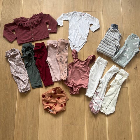 Stor klespakke i størrelse 62, og noe i 68! Noe er ikke brukt, noe mer brukt.