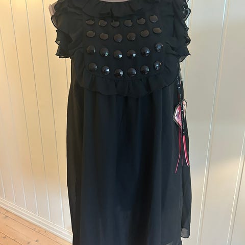 Nydelig rosa festkjole fra Jenny Skavlans kolleksjon for BIKBOK. Hjerteformet topp, vidt plisséskjørt, foret. Overdelen har teksturert blomster-/ruffledetalj, mens skjørtet er lett og plissert med vid fasong. Erm- og skulderløs modell med markert liv.