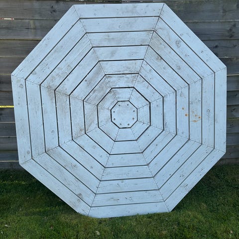Har et 8-kantet hagebord i hardwood/teak? som selges for kr 800,-/evt bud. Bordet fremstår som stødig og solid og har vært brukt som avlastningsbord/blomsterbord. Trenger en liten vårpuss for "å skinne", men kan fint brukes som det er. Kan hentes på dag eller kveldstid etter nærmere avtale.