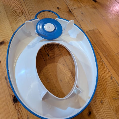 Baby Bjørn potte og en mummipotte (design slitt) gis bort.