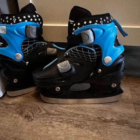Skøytene kan justeres enkelt fra str. 31 - 36. De er kun brukt 2-3 ganger, og fremstår som nye. Selges til halv pris (Nypris 599).