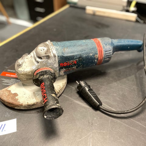 Liten 5 toms vinkelkutter. Fungerer fint. Deksel over kutteskive er noe løs.