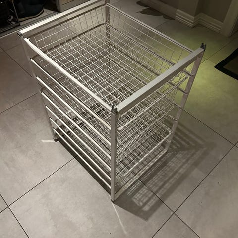 Kurvene er 52x42 og 18cm dype. Stativet er 45x53,5 og 106cm høyt. Må hentes.