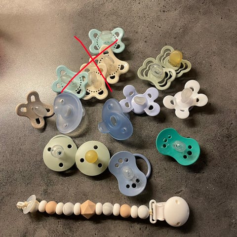 Selger en del ubrukte smokker (kun silikon) og smokkeholdere som jeg kjøpte for en liten stund siden da livssituasjonen endret seg og jeg var litt rask med å handle inn baby-utstyr..
