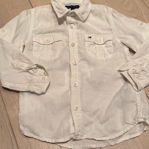 En T-skjorte denne har en flekk på magen. Str 6-7.