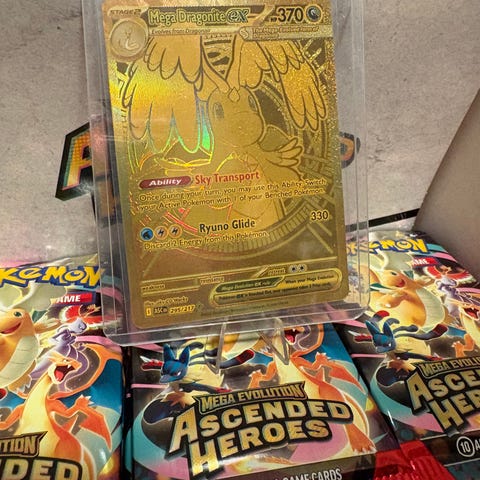 Pokémon Mega Dragonite EX luftes for salg, pack fresh i sleeve og toploader.
