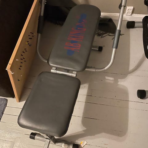 Skal visst trene magemuskler eller noe, men det kan jeg ikke skryte på meg å være innehaver av så derfor gis den bort.