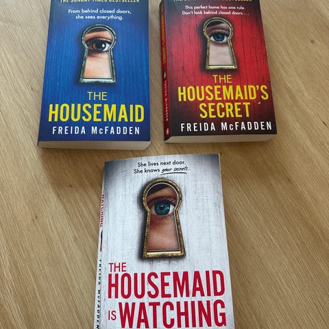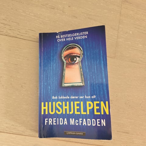 Freida McFadden Hushjelpens hemmelighet pocket bok. Pocketutgave på norsk. Boken tilhører krim- og spenningssjangeren og handler om en hushjelp som arbeider i et tilsynelatende perfekt hjem, der mørke hemmeligheter gradvis avdekkes. Teksten på omslaget oppgir at boken er vinner av Goodreads Choice Awards 2023. Egner seg for lesere som liker psykologiske thrillere.