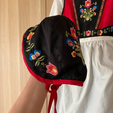 Pent brukt festdrakt, kjole og skjorte. Skjorte str 122/128, men stor i størrelsen. Kjolen er str 134/140.