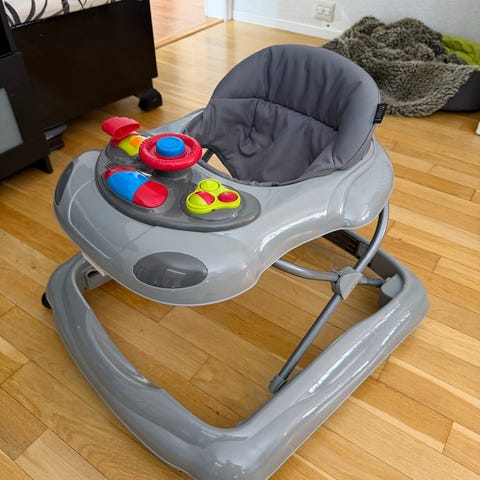 Yngri ubbe gåstol. Kan legges sammen når den ikkje er i bruk. Setetrekk kan demonteres og vaskes.