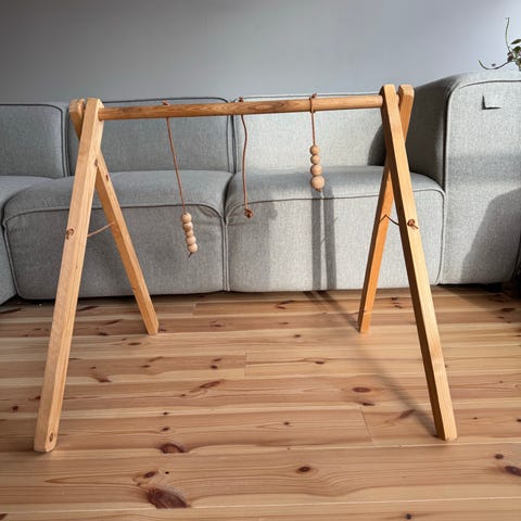 Isbjørn babygym er en supermyk lekematte utformet som et lite isbjørnskinn, med to kryssende myke buer over, og med 3 hengende leker( mangler 2 sykker på denne, orginalt 5). På matten er det fastsydde detaljer som barnet ditt kan ta og føle på. Buene er avtagbare, og når barnet blir større kan babygymmens teppe brukes som lekematte. Isbjørn babygym passer fra nyfødt. Tåler maskinvask på 30 grader.