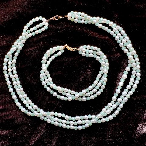 Halskjede med glassperler og detaljer i ferskvannsperler (ubrukt)