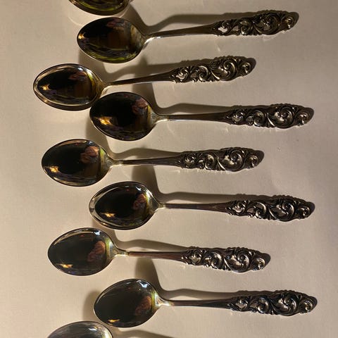 17 stk nydelige teskjeer i telesølv selges samlet. . 11,5 cm. 830S.