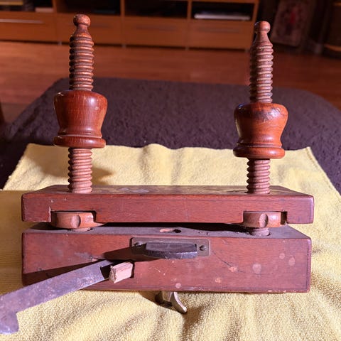 Treskjærerjern sett i treboks. Settet består av flere ulike jern med rette og buede former, egnet for detaljert treskjæring og forming. Håndtakene er i tre, mens bladene er i metall. Leveres i en treboks med skuminnlegg for oppbevaring og beskyttelse av verktøyene. Passer til ulike typer treskjæringsarbeid og hobbybruk. Litt butt på noen av trehåndtakene, derfor selger vi for 500kr!