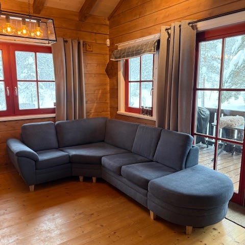Stor Hjort Knudsen hjørnesofa selges. Lyse grå farge. Den er ca 12 år gammel, men i veldig god stand. Det er stort sett to steder i sofaen som har blitt brukt.