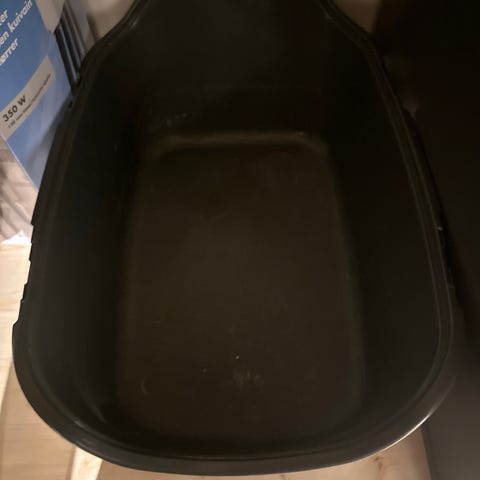 Type: lukket kattedo med lokk og svingdør.