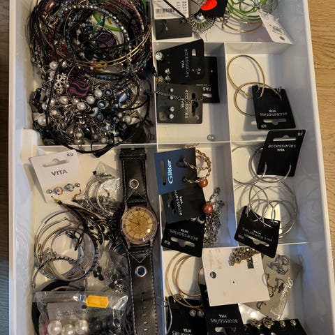 Accessorize smykke- og øredobbesett for dame. Sett med halskjede med flerstrengs kjede og rund anhengsdetalj, samt matchende øredobber. Utført i ulike materialer med lyse, naturpregede toner. Passer som tilbehør til ulike antrekk i hverdagen eller ved enkle anledninger.