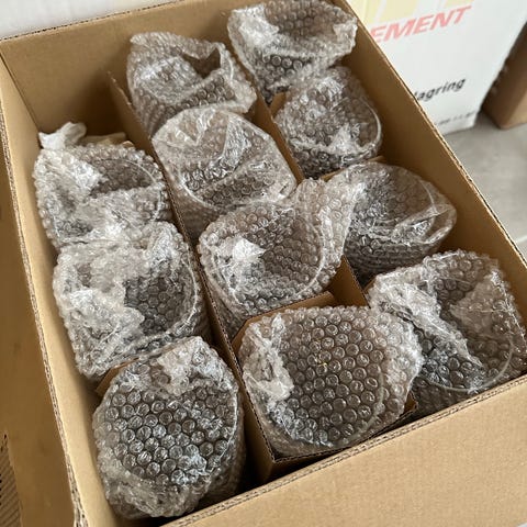 350 er fortsatt pakket i plast, og en del er åpnet men ubrukt. Totalt litt over 400 stk.