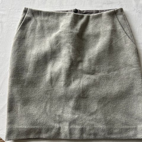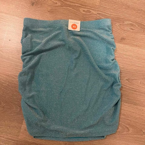 Strikket skjørt fra Bik Bok i glittrende sølv stoff.