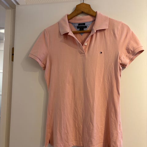 Pent brukt blå pique fra Tommy Hilfiger i strl M i slim fit. Ingen synlige flekker eller merker. Fin i kragen og to knapper som gjør at man enten kan kneppe igjen eller ha det åpent.