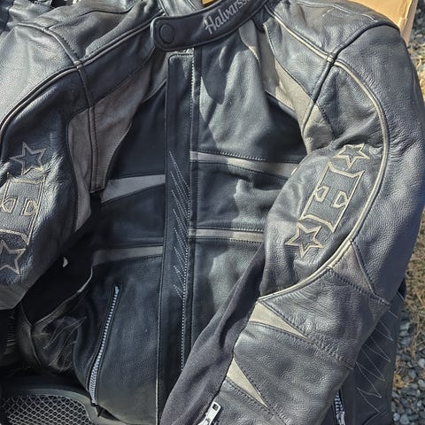Jeg er 196cm/95kg og opplever jakken som litt kort og litt for vid for meg. Pent brukt uten synlige skader/defekter.