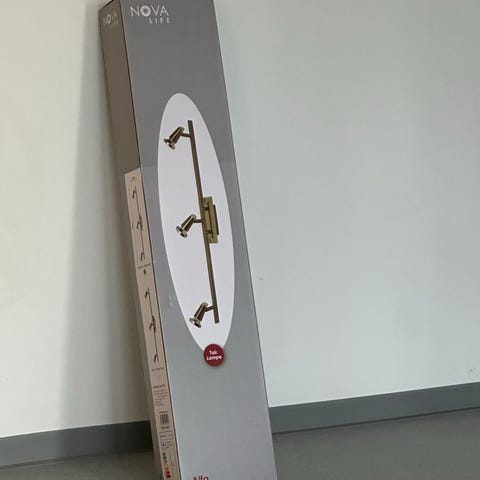 Lampen er kjøpt fra en nå nedlagt lampe butikk i Lillehammer og selges derfor rimelig. Esken har vært åpnet, men ikke montert, da vi ombestemte oss.