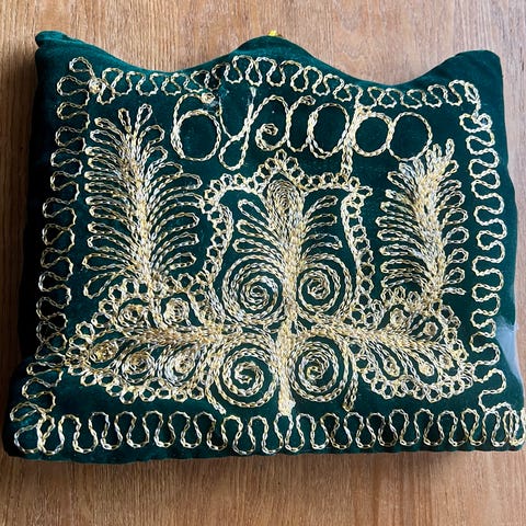 Silke brodert tevarmer og brikke flerfarget tekstil