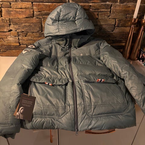 Lite brukt. Hatt i 1.5 år ca. Litt stor i størrelsen da modellen er ekspedisjonsjakke, så den skal være romslig. Veldig god jakke. Selger også buksen i samme farge og sett.