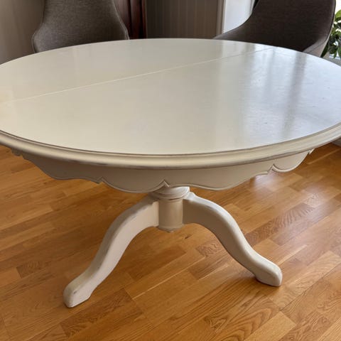 Lengde på bord på bilde med en ileggsplate: 170 x 120 cm.