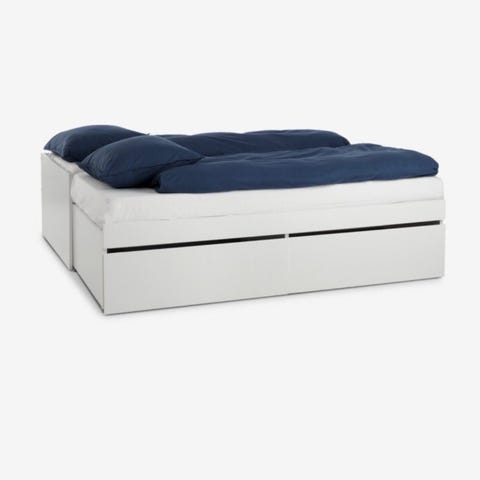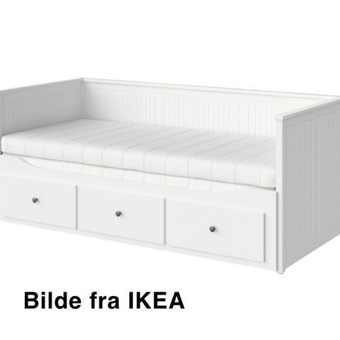 IKEA dagseng i hvit utførelse. Sengen har rygg- og sidepaneler og kan brukes som sofa på dagtid og seng om natten. Under sengen er det flere uttrekksskuffer som gir ekstra oppbevaringsplass. Ribbebunn i tre er inkludert. Passer som gjesteseng, ungdomsseng eller dagseng i stue eller gjesterom.