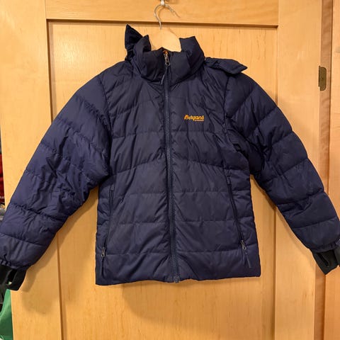 Selger denne lette vinterjakken i dun fra Bergans. Snøstopper på armene og muligheter for å justere med strikk nederst. Godt brukt, men fortsatt mye jakke igjen for pengene. En liten rift som er sydd i front, nede ved glidelåsen.