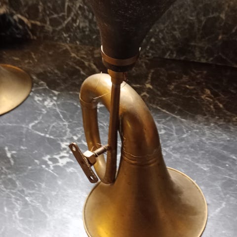 Parafinlampe/kupélampe i messing fra Norges statsbaner. Benyttet på begynnelsen av 1900-tallet.