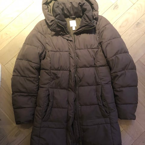 Selger en sort vinterjakke fra H&M. Skjult glidelås med knappelukking utenpå, deilig krage og hette. En enkel men god og varm jakke.