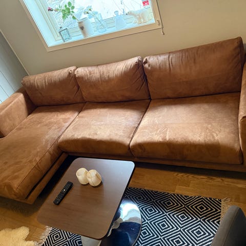 3 seter skinn/skai sofa der alle 3 setene kan legges bakover NY PRIS