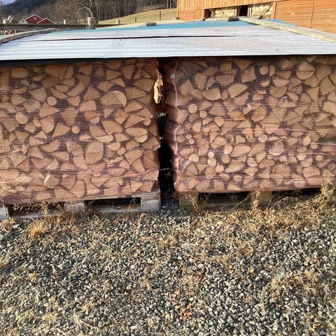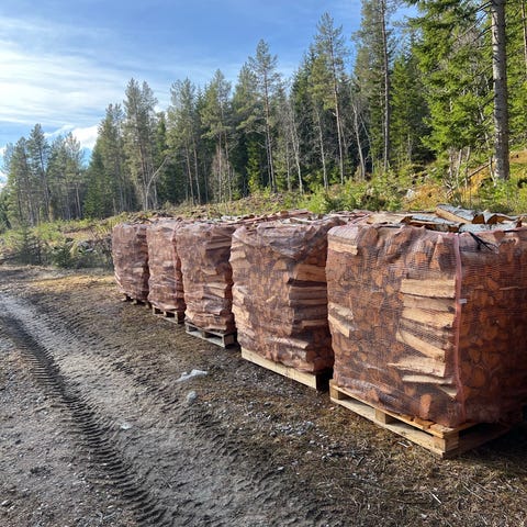 Ved i 1000 l storsekk på pall
