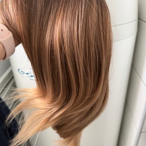 Brun mellomlang syntetisk parykk for dame. Parykken har jevn brunfarge med naturlig glans og midtskill. Lengden går til like under skuldrene, med lett oppklipt fasong i tuppene. Egnet til daglig bruk, styling eller som ekstra hår ved behov. Leveres på enkel stativholder som vist på bildene dersom ønskelig. Brukt 4 ganger. Nypris 7600kr.