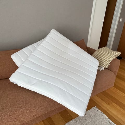 Madrass til sprinkelseng eller som ekstra madrass til gulv. Brukt på hytte en sjelden gang, og da har det vært madrassbeskytter i tillegg.