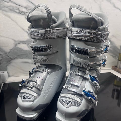 Modellen har fire justerbare spenner og powerstrap øverst. Støvlene er av type som har ekstra varme (se bilde med merke). Jenta vår på 10 år har likt disse støvlene veldig godt og har aldri klaget på kalde tær. Selges pga. at de nå er for små.