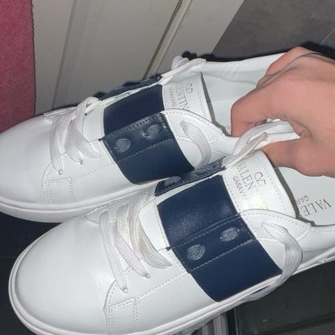 Valentino Garavani sneakers/joggesko i størrelse 40. Modellen er i hovedsak hvit med blå detalj over vristen. Sålen er kraftig med mønster for bedre grep. Passer som hverdags- og fritidssko. Unisex-modell avhengig av passform og fotbredde.