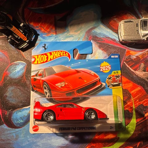 Selger en gul Ferrari F40 fra Hot Wheels.