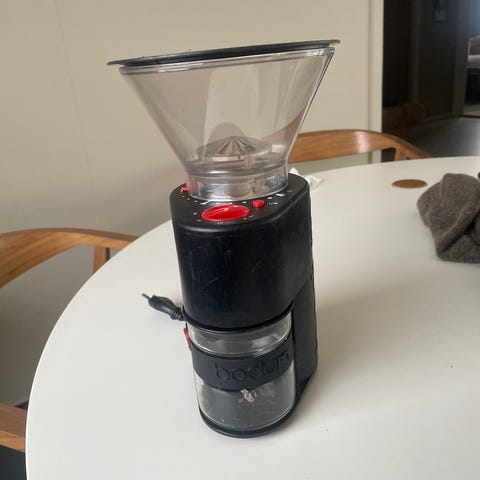 Pent brukt kaffekvern fra Bodum selges grunnet overgang til kaffemaskin.