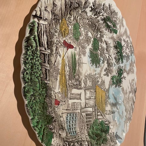 Fatet har bruksmerker på kant, og noen streker nede i fatet.