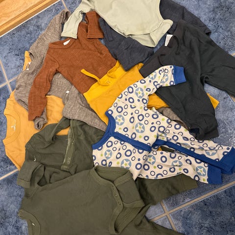 2 bodyer, 2 bukser og 2 veldresserte ull i str 68 fra reflex/nameit/joha