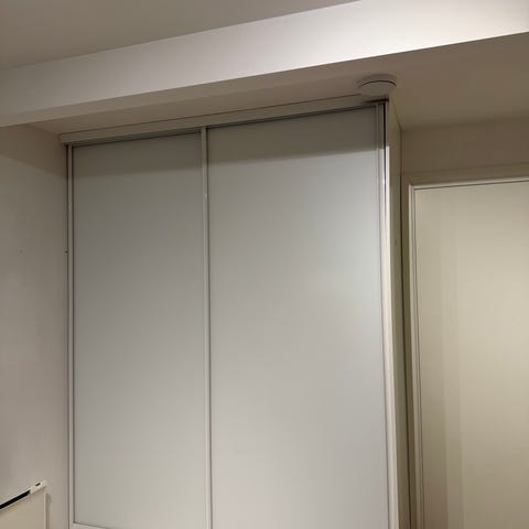 Ca 1 år gammelt. Ingen slitasje eller bruksmerker. Skap hentes ferdig demontert for å kunne fraktes ut. Bakplate som var spikret fast har merker etter spiker.