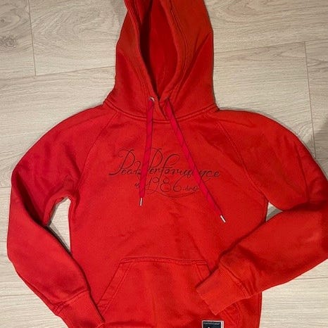 Peak Performance hettegenser for dame i størrelse XL. Hettegenseren er blå og laget av bomull. Modellen har justerbar hette med snøring, ribbestrikkede mansjetter og nederkant, samt kengurulomme foran. Diskré Peak Performance-logo på brystet. Passer til hverdagsbruk og fritidsaktiviteter.